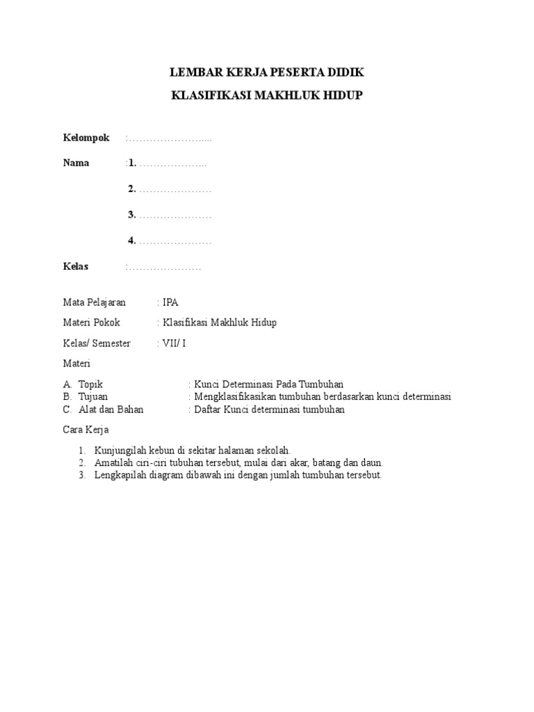 1 Buku Siswa Ipa Kelas 7 Kurikulum 2013 Revisi 2017 1 Flip Ebook Pages 51 100 Anyflip Anyflip from online.anyflip.com Adi hartono et al., identifikasi tumbuhan tingkat tinggi (phanerogamae) di kampus ii uinsu Identifikasi mencakup dua kegiatan, yaitu klasifikasi dan tata nama. Daun tunggal atau majemuk, duduknya tersebar, tidak mempunyai daun penumpu. Dalam dunia tumbuhan ganggang termasuk kedalam dunia thallophyta (tumbuhan talus) karena belum dapat dibedakann akar, batang dan daun secara jelas. Berikut adalah contoh cara membuat kunci determinasi. Tumbuhan tersebut memiliki klorofil dan berfotosintesis. Identifikasi merupakan kegiatan dasar dalam taksonomi. Tumbuhan tingkat tinggi (phanerogamae) merupakan tumbuhan berbiji yang berkembang biak secara seksual.
