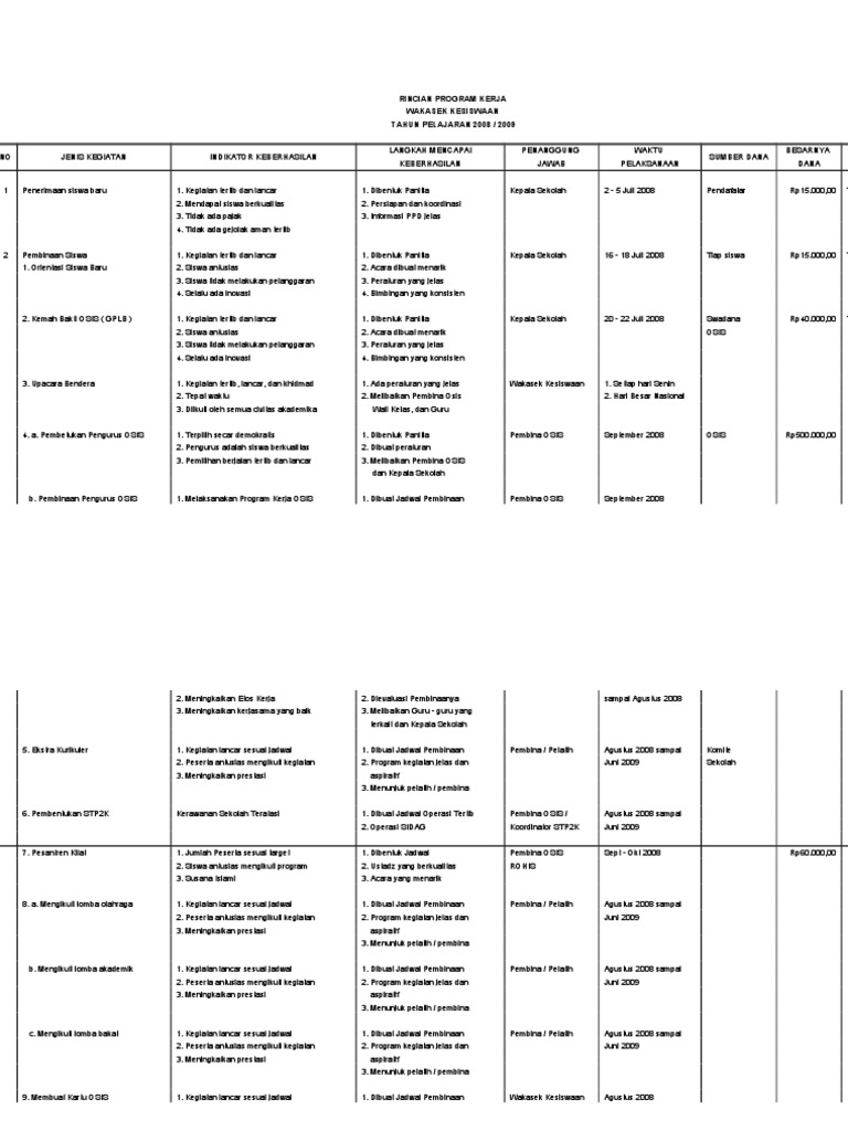 Matrik Program Kesiswaan Xls from reader021.docslide.net Demikian program kerja bidang kesiswaan ini di buat dengan harapan dapat dijadikan bahan masukan dan menjadi pedoman dalam penyusunan dan pelaksanaan program kegiatan sekolah, khususnya yang berkaitan dengan kegiatan sekolah bidang pembinaan kesiswaan. Kali ini kami akan mencoba membagikan contoh program kerja wakasek/ pks kesiswaan jenjang smp versi 2018 format pdf dan doc yang bisa di download gratis. Program unggulan akademik dan nonakademik i. Program kerja sekolah sering disebut juga agenda kegiatan merupakan sebuah rencana sekolah yang disusun untuk jangka waktu tertentu dan telah disepakati oleh seluruh komponen sekolah. Baiklah bagi anda yang membutuhkan file contoh program kerja wakil kepala sekolah bidang kesiswaan versi terbaru untuk jenjang sd,smp,sma dan smk yang akan saya bagikan pada postingan ini maka anda dapat mendownloadnya dengan cara silahkan anda klik pada judul di bawah ini ; Contoh program kerja kegiatan ekstrakurikuler pramuka pendidikan. Melakukan kegiatan masak bersama siswa dan guru karyawan dalam rangka idul adha 1439 h. Program pembinaan kesiswaan (osis) 2.